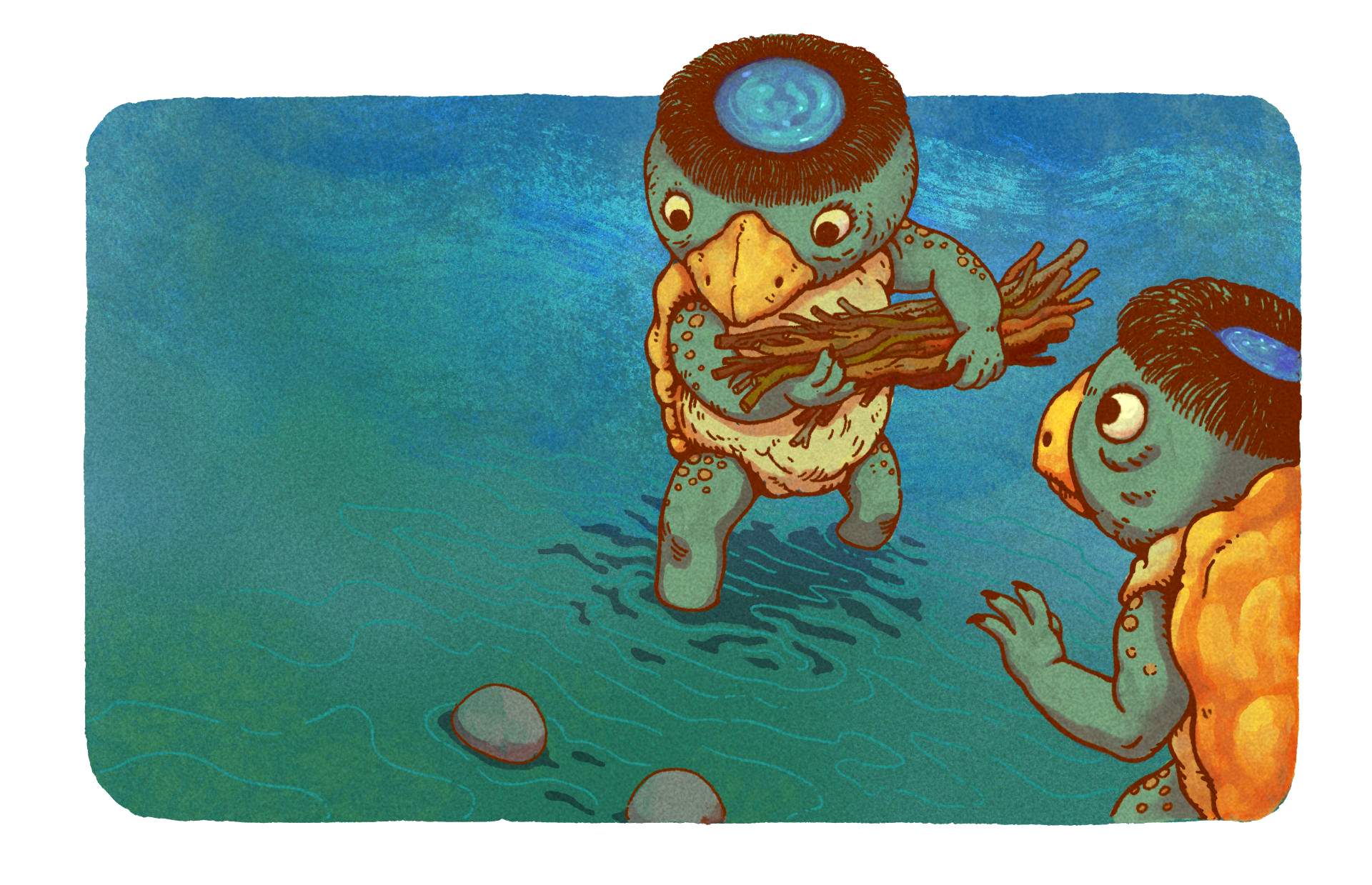 Here's a sneak peek at an illustration that will be part of one of the zines, Brimstone Ikebana: a group of Kappas building a dam.